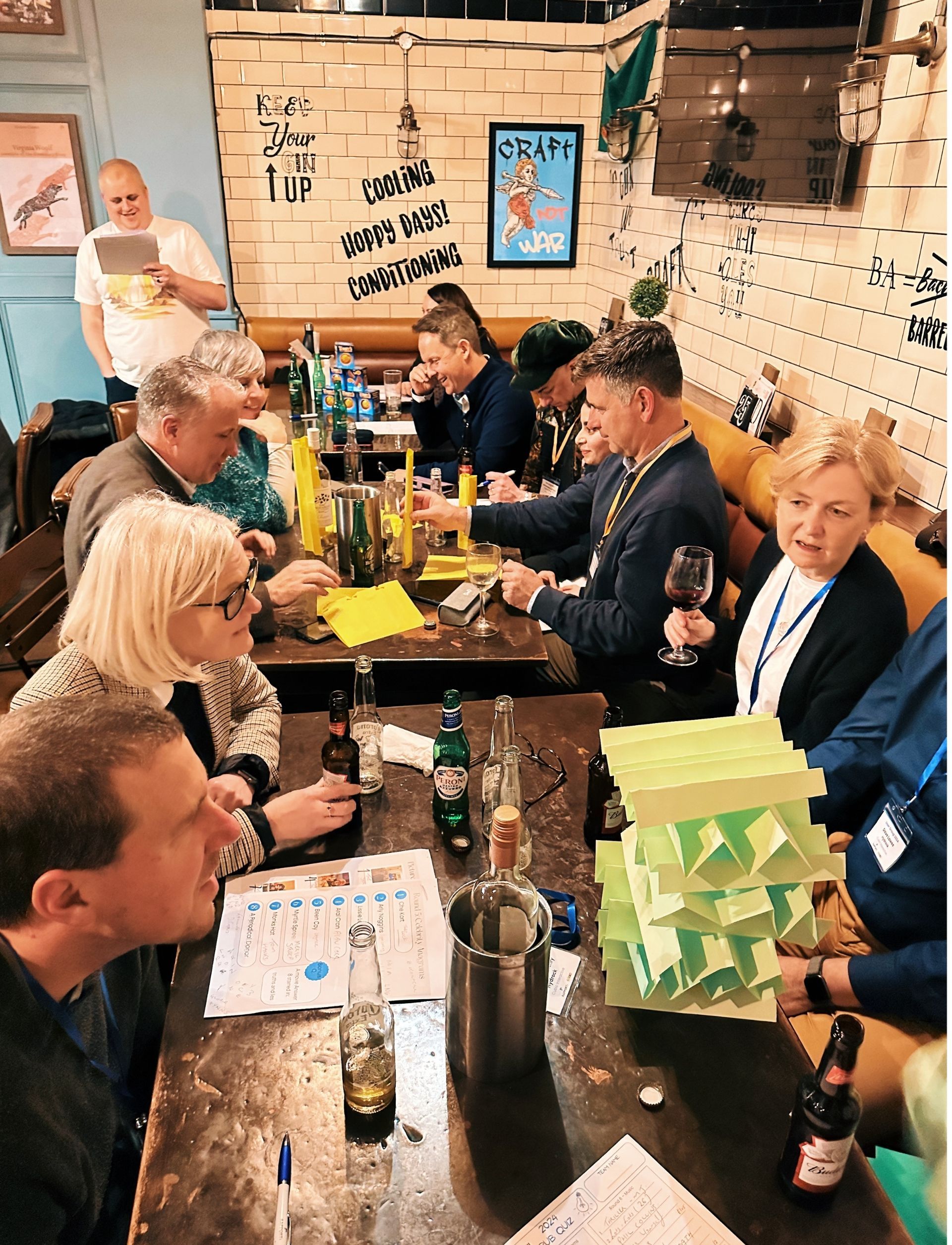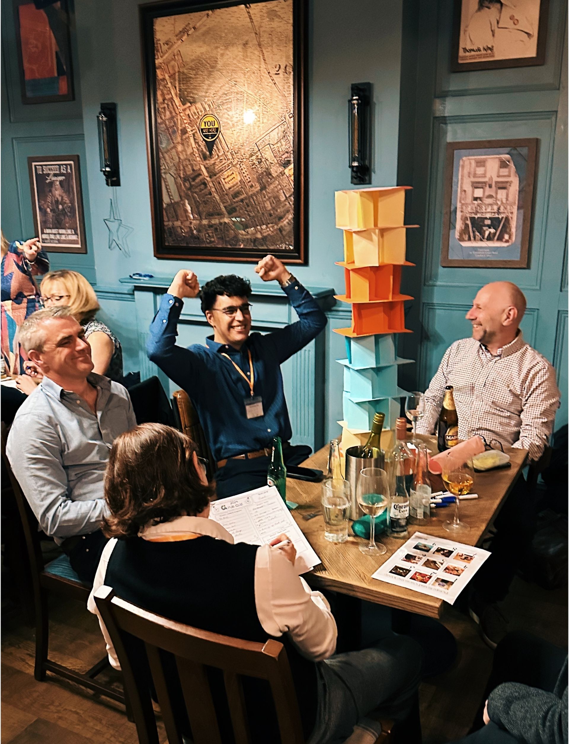Following the presentations, we went to a local bar for food and drinks. It was an opportunity for clients to mingle with our team and other clients, share ideas, and discuss how business is going. We ended the night in London with a table quiz, where the Hydrock, CampbellReith, and Hopkins team took home the top prize! We also had fun using paper to build the highest structure possible. Clearly, some very skilled construction professionals were in the room based on how high and sturdy they could build the paper structures!